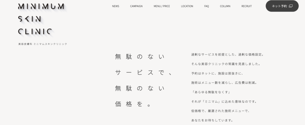 MINIMUM SKIN CLINICは東京の池袋と銀座に2院ある、肌の美容に特化したクリニックです。厳選された美容医療の施術メニューを提供し、低価格を心がけています。
